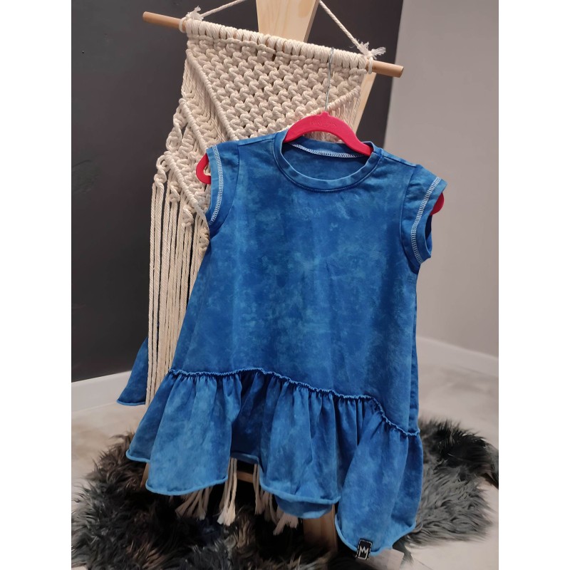 Fantastyczna sukienka sprawdzi się na co dzień i od święta. Będzie uzupełnieniem wielu stylizacji. Sukienka posiada piękną falbanę, która genialnie się układa. Kolor czarny i niebieski